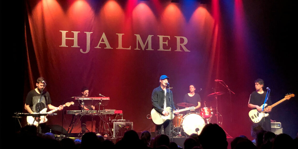 Kl. 21:00 gik Hjalmer og hans band på. Oppe på scenen, hvor Hjalmer og hans band stod, var der et stort rødt tæppe, hvor der stod Hjalmer med hvide bogstaver, og så stod de foran det.