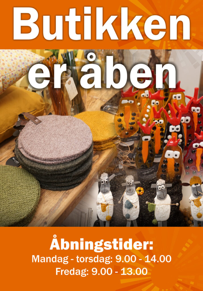 Odense Værkstedernes butik, Butikken, Rytterkasernen 19, Odense, er igen åben efter at have været lukket ned på grund af corona.