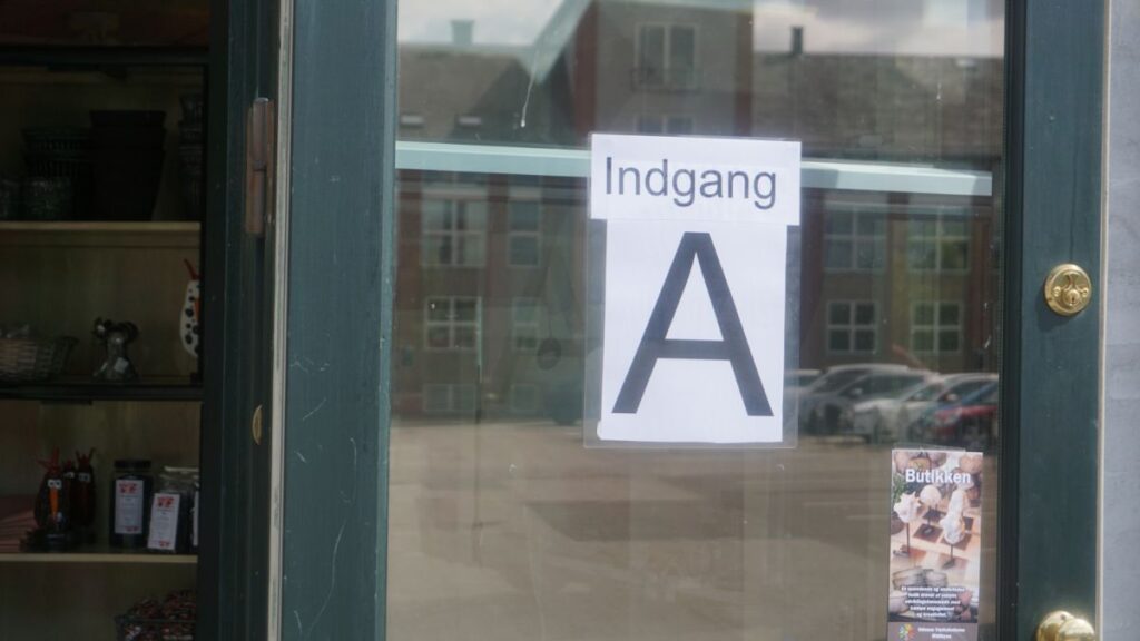 Når du besøger butikken skal du gå ind af indgang A, spritte dine hænder af og tage handsker på, som ligger lige indenfor døren.