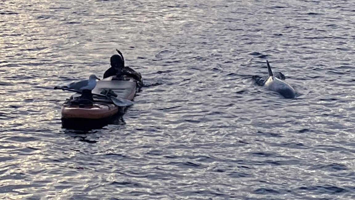 Delle er svømmet til Travemünde i Tyskland. Det kan være, at han har spist alle fiskene i Svendborg Havn, eller bare ikke vil være der mere.
