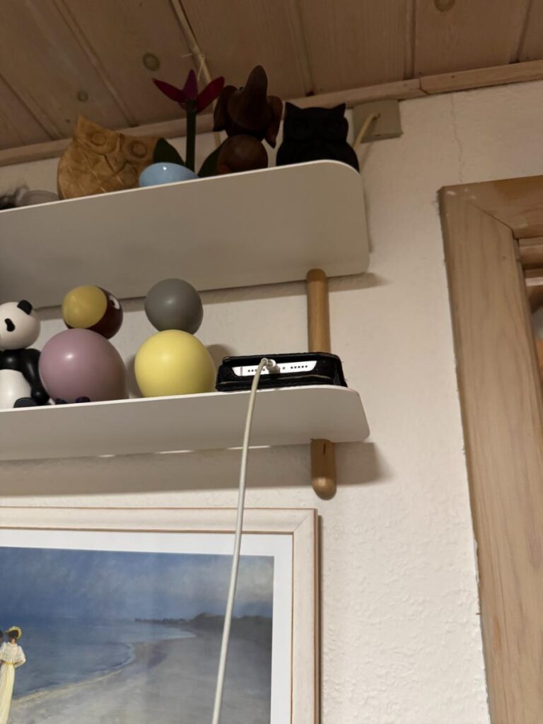 Idéen fik jeg fra en medarbejder på Munkehatten, hvor jeg er i aflastning en gang om måneden. Sidste gang jeg var der, fortalte han mig om, hvordan han selv håndterede sin mobil om aftenen. Han sagde, at han altid lagde den et sted, hvor han ikke kunne nå den fra sengen, og at det havde gjort en stor forskel for hans søvn. Han sagde også til mig: “Næste gang vi ses, så ligger din mobil på hylden og lader op.” Det satte sig fast hos mig.