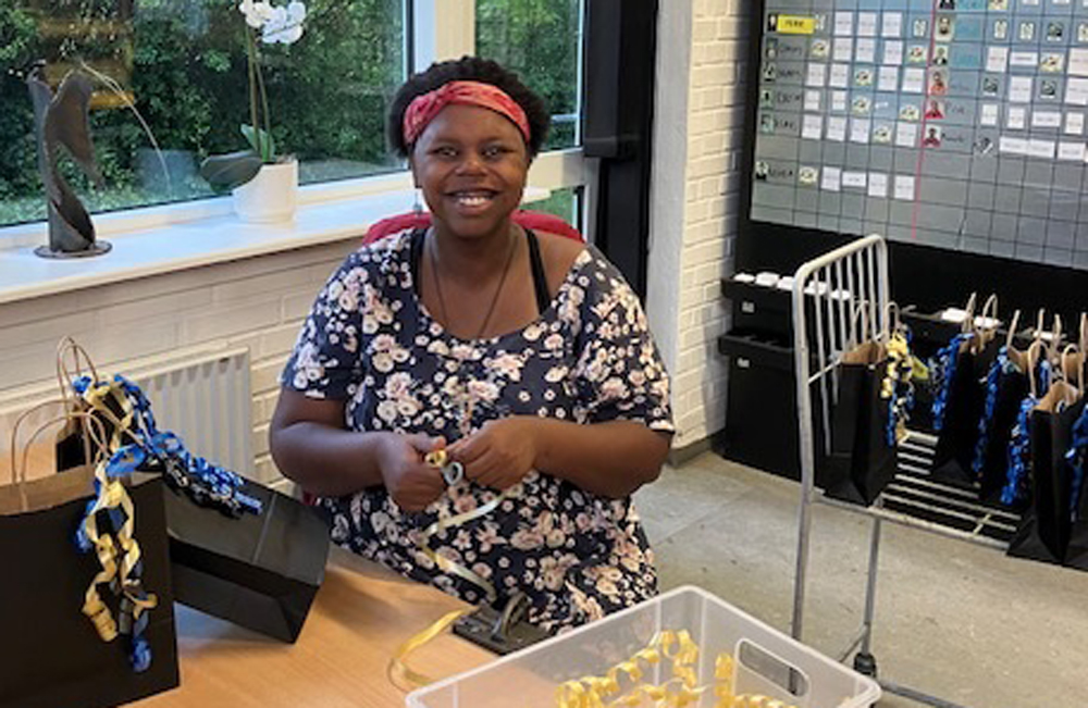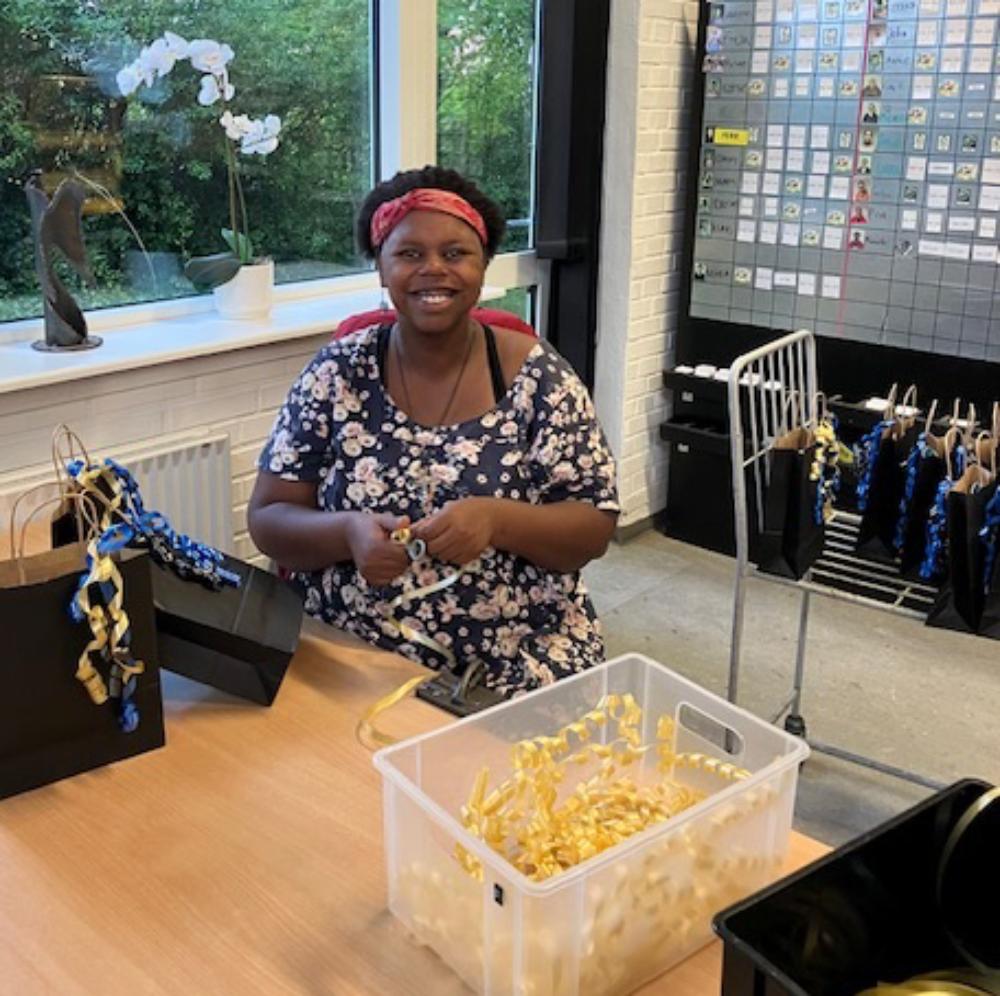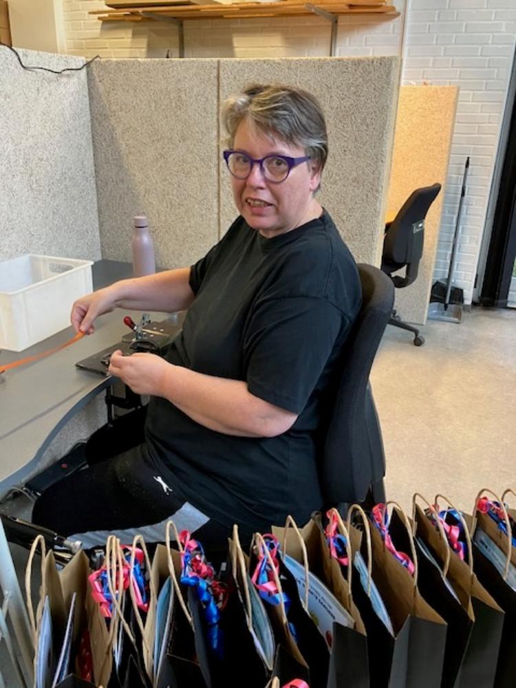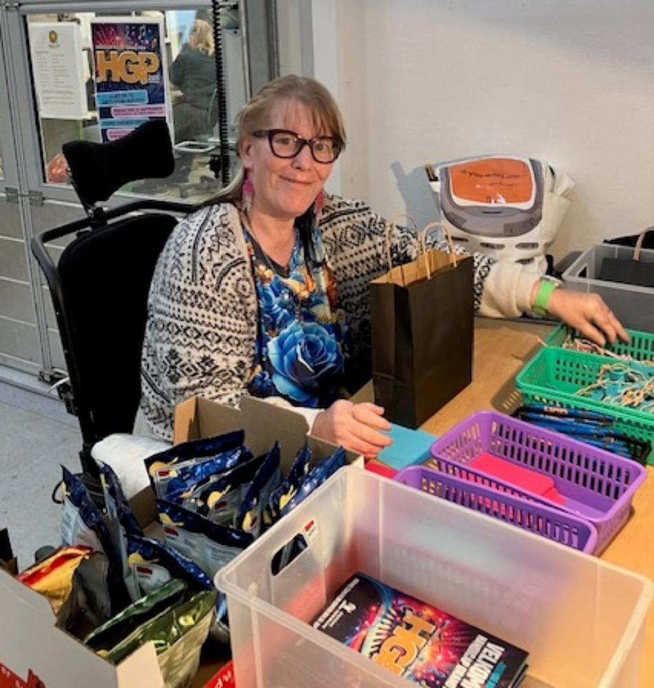 På Industriværkstedet Bregnevej er der fuld gang i at få pakket de flotte Goodiebags som alle publikum til HGP skal have. I hver Goodiebag er der et program over dagen til HGP, stemmesedler til første og anden stemmerunde, nogle pyntestjerner i pink og i turkis, en pose chips og en kuglepen, så man kan udfylde sin stemmeseddel.
