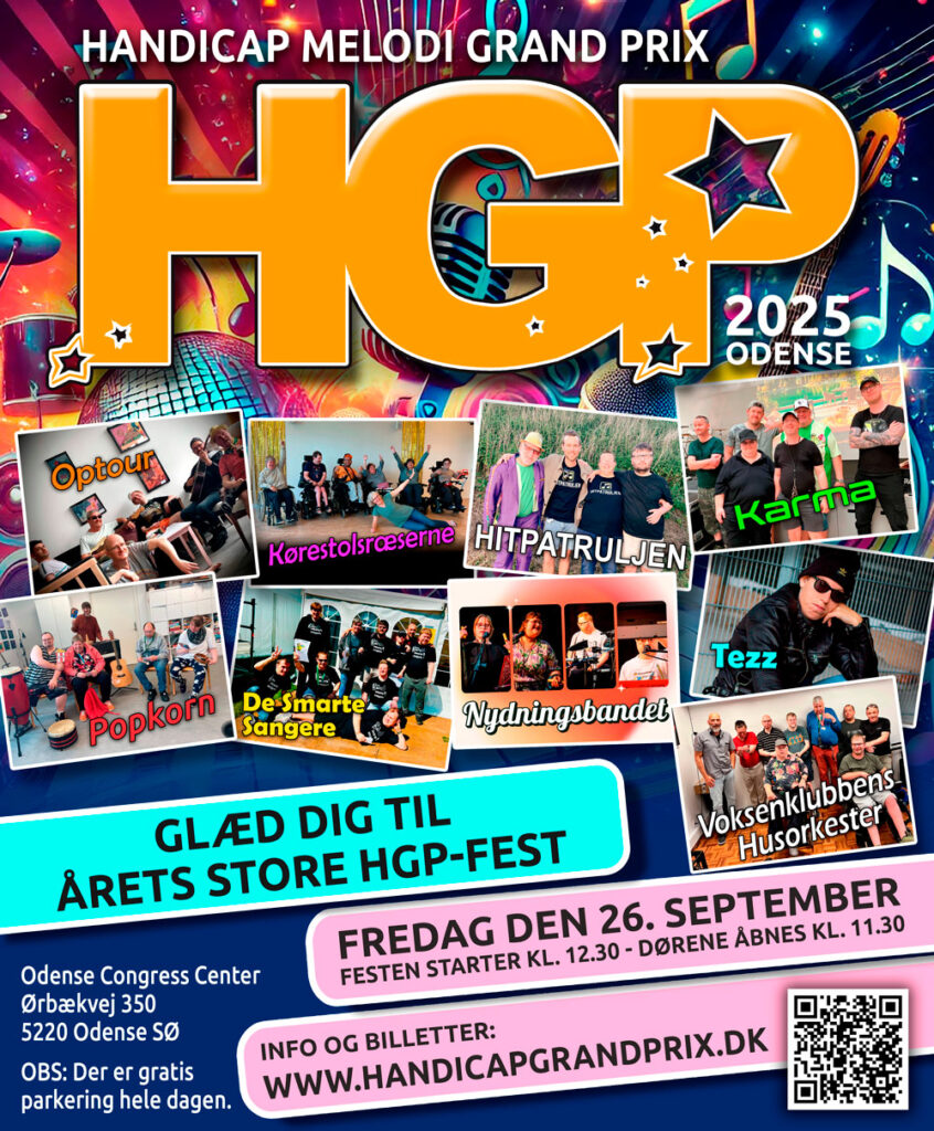 I år afholdes Handicap Melodi Grandprix i Odense. Det bliver afholdt fredag den 26. september 2025, kl. 12:30 til ca 18:00 i Odense Congress Center.