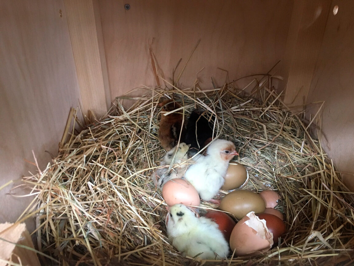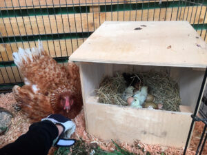 Der var 10 æg i alt. 4 af æggene kom fra Havørnens egen høne og 6 andre æg, havde hønemor adopteret fra en anden høne. Den er ejet af Anne, som har været i virksomhedspraktik i Havørnen, og som har sin egen hønsegård.