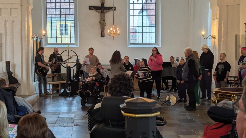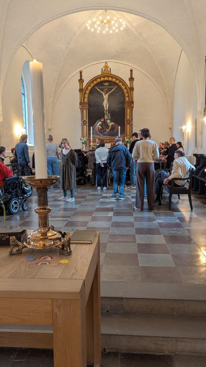Onsdag den 8. oktober var der høstgudstjeneste i Vor Frue Kirke, og stemningen var varm og festlig. Det var Odense Værkstedernes to faste præster, Anja Damkjær True og Jonas Daen Weisenberg, der stod for gudstjenesten.