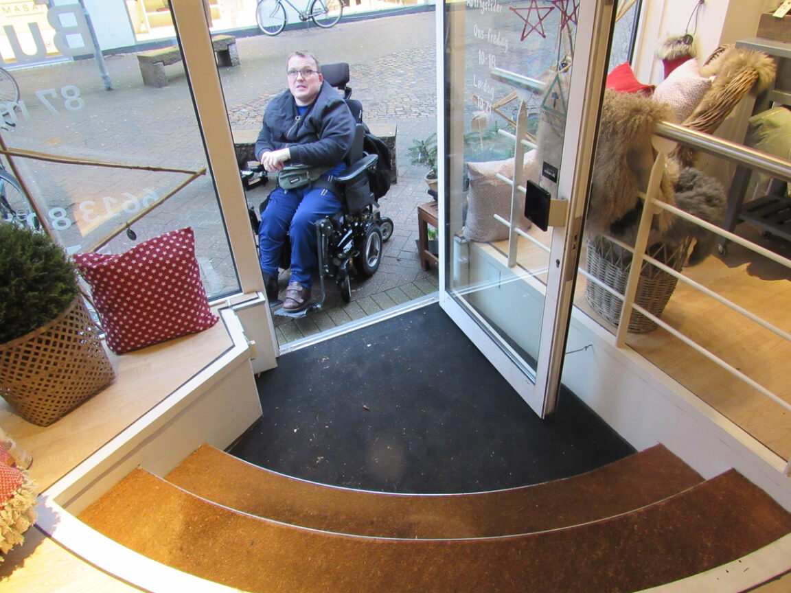Som kørestolsbruger kan det undre mig, at man laver en butik, hvor adgangsforholdene er så ringe for folk i kørestol. Specielt når det er en butik, hvor varerne, der sælges, bliver produceret af handicappede, hvoraf mange af dem i kørestol. Når nu butikken repræsenterer et sted med mange kørestolsbruger, så synes at adgangsforholdene for handicappede godt kunne være bedre.