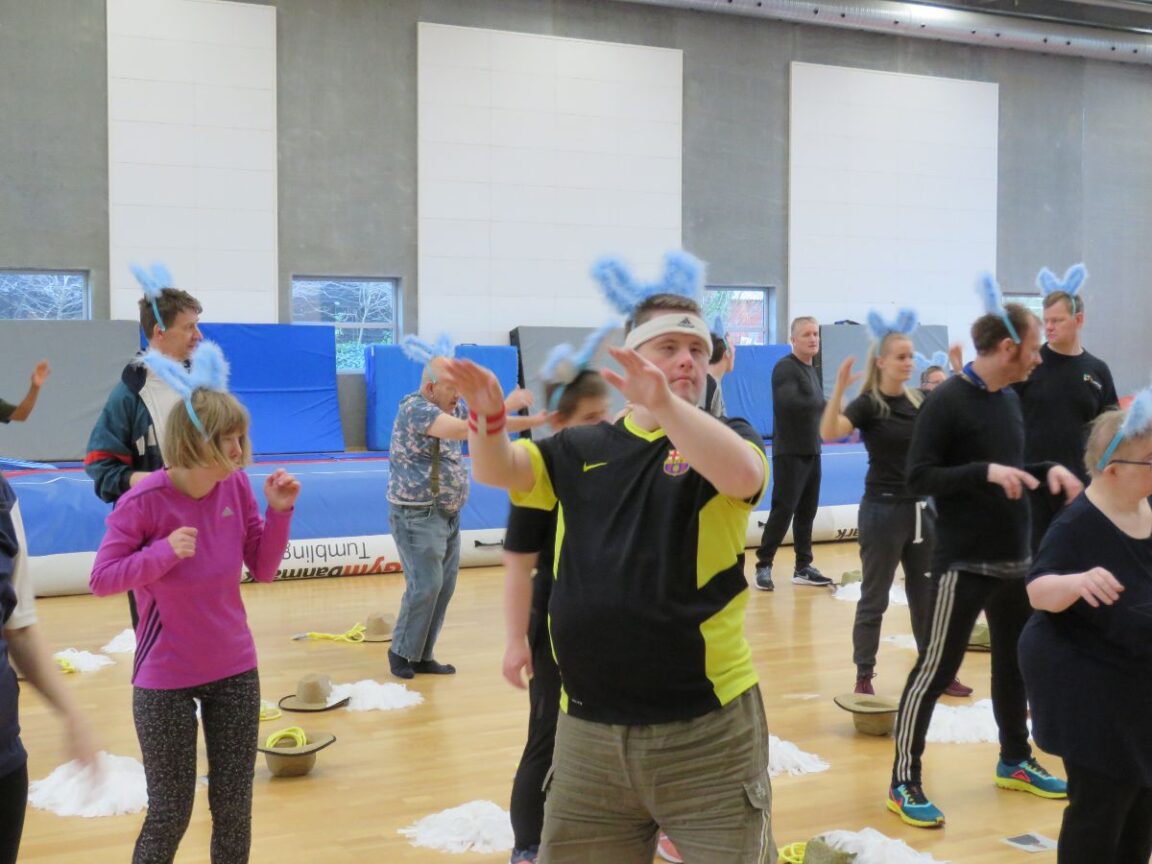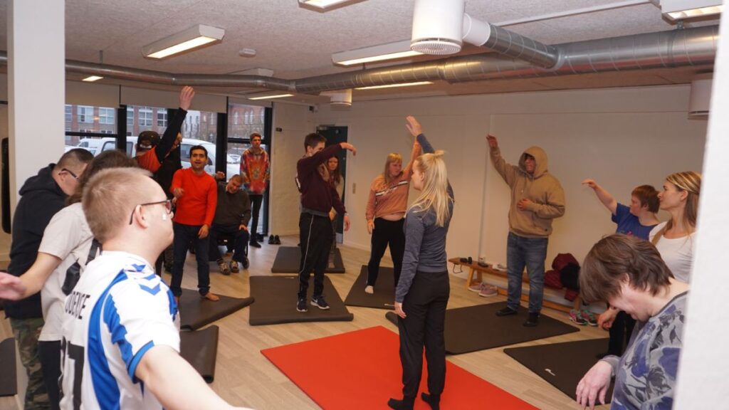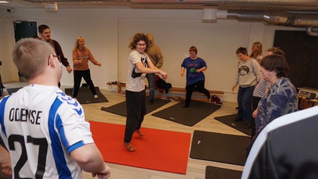 Det forgår i Multirummet med nedrullede gardiner og dæmpet lys. Man har det sjovt og hyggeligt og alle på Rytterkasernen er velkommen, til at komme og danse og få masser af motion. Det er 6 – 8 deltager sammen med Betina deltagere pr. gang.