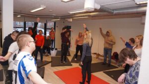 På holdet er der 16 medarbejdere og 2 personaler. Der startes med at varme op, først er det Tine eller Betina der varmer. Derefter er det medarbejderne der står for opvarmningen på skift.