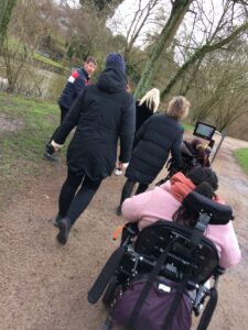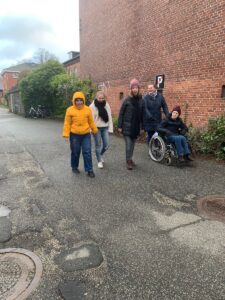 Det er ikke en planlagt rute. Om sommeren går turen tit ned ved åen, hvor man kigger på natu-ren og snakker om hvad vi ser og oplever. Andre gange er der stemning for, at turen går ind til byen og der eventuelt kan handles enten til en selv, eller en aktivitet. Det er Lone og Louise der er tovholder for den Fælles Gåtur.