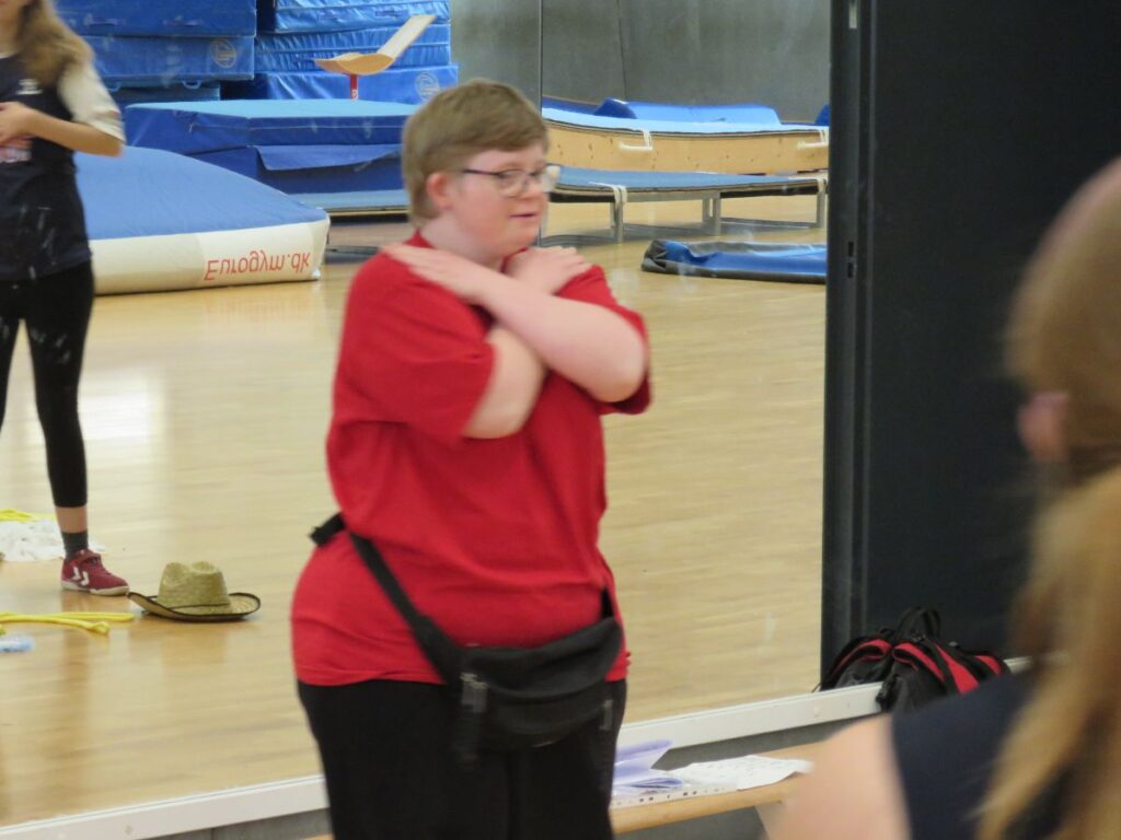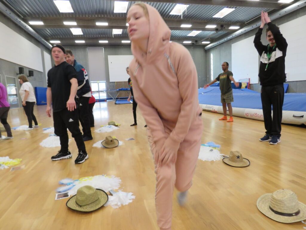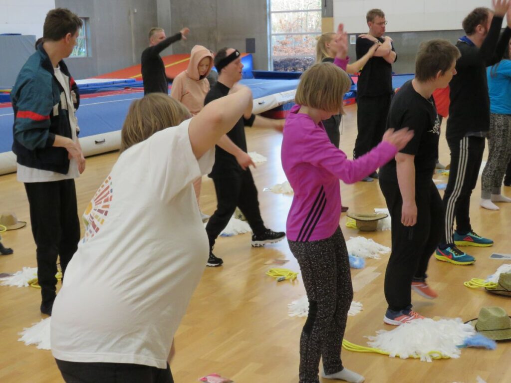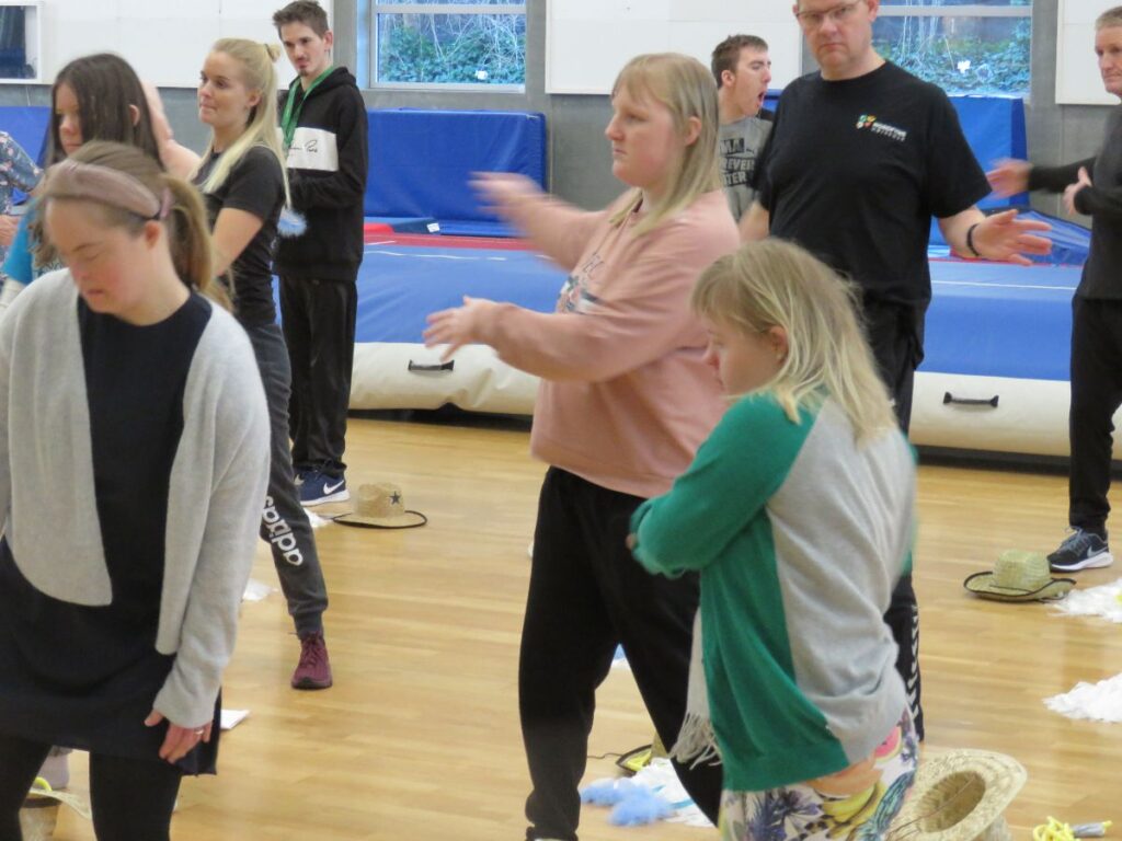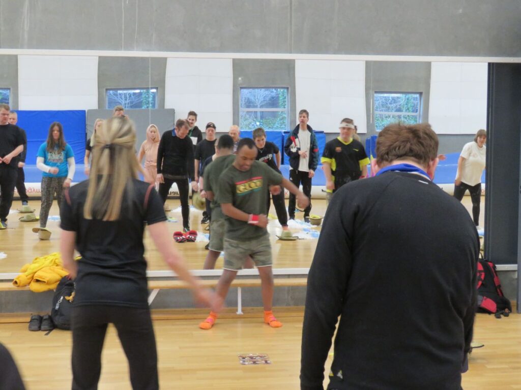 medarbejderne der skiftes til vise hvad øvelser der skal laves.