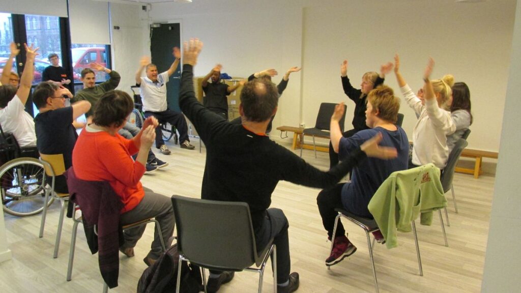 til, med musik og bevægelser. Der deltager 24 borgere fra forskellige grupper