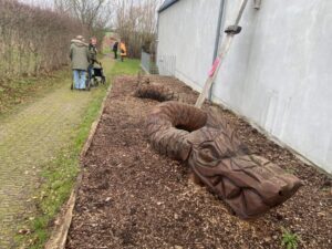 Vi er også i gang med at lave Midgårsormen, som skal udstilles i gårdhaven. Ideén til at lave vores Midgårdsorm fik vi, da vi så en anden Midgårsorm, som er udstillet ved Ladbyskibet.