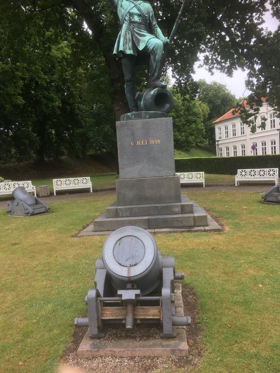 Vi var også rundt i Fredericia med guide, hvor vi blandt andet var oppe på volden. Her fortalte vores guide om kanonerne på volden. Det var spændende.